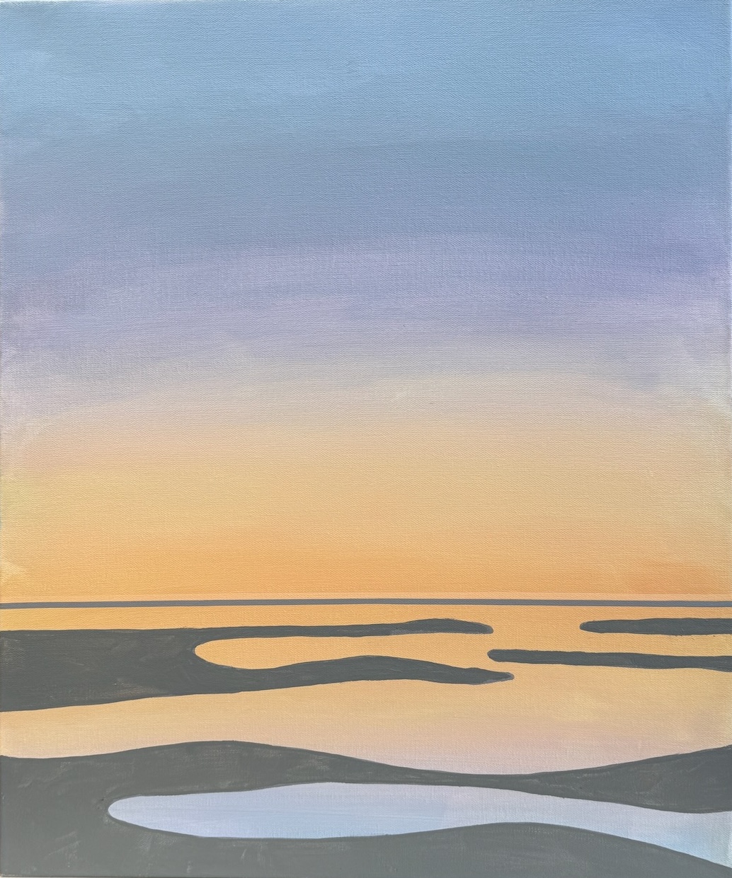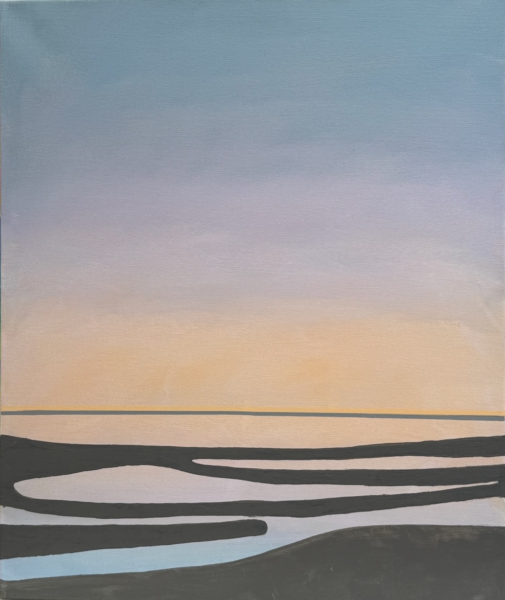 These paintings are inspired by the varying qualities of color and a fascination with misty vistas created by light and reflections.